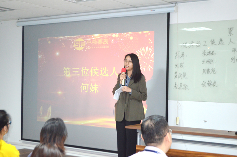 賽辰公司50余名員工參加了此次評選大會,優秀員工評選是自賽辰公司2014年成立以來的每個年度都會舉辦,但本年度新增了“杰出管理者”評選。此次的評選工作是采取全體員工民主評選的方式選舉產生:先經過全體員工在2021年1月29日第一輪投票評選出5名杰出管理者候選人、10名優秀員工候選人,于2021年2月26日通過全體候選人現場述職報告和全體員工第二輪現場民主評選投票兩個環節最終選出。